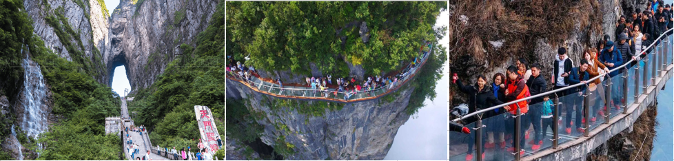 天門山國家森林公園:位於天門山國家公園內,以「天路」及壯觀的纜車系統聞名於世。天門山纜車被多家旅遊刊物譽為「世界上最長、海拔最高的高山纜車之一」,全線共設98個車廂,總長超過7,400公尺,上站海拔達1,279公尺。(包含:纜車往返+玻璃棧道)