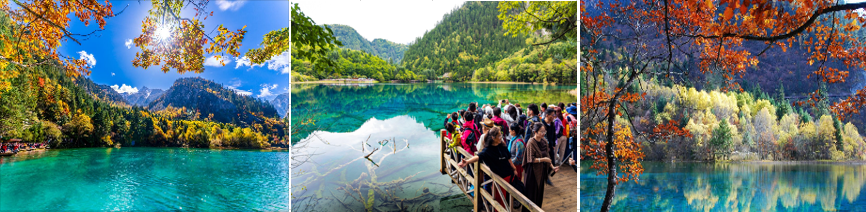 Cửu Trại Câu : Nơi được mệnh danh là “thiên đường hạ giới” với phong cảnh sơn thủy thiên tạc hùng vĩ. Một tuyệt tác gồm 12 đỉnh núi, với hơn 100 hải tử (hồ con) cùng 17 thác nước và muôn vàn loại động thực vật phong phú giữa vùng núi đá vôi ở cao độ trung bình từ 2.000m đến 4.000m.