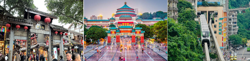 當地導遊及接送車輛接送團隊享用午餐。餐後,前往高鐵站搭乘高鐵返回重慶,抵達重慶後,繼續參觀: